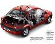 Wykorzystanie tych samych elementów w wielu samochodach jednej marki ("carry over”) daje klientom gwarancję niezawodności i przekłada się na znaczne oszczędności producenta. Podejście to zostało także zastosowane podczas prac nad modelem L90, który został wyposażony w silniki, zawieszenie przednie, układ kierowniczy oraz tylne hamulce zapożyczone z modelu Clio. Elektroniczne funkcje pojazdu zostały zgrupowane w Centralnym Bloku Kabiny, wywodzącym się z tego rodzaju urządzenia stosowanego w Renault Clio.